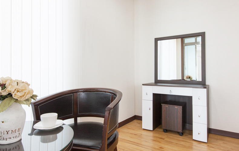 4. Essential kitchen tools equipped in every room such as microwave oven, refrigerator, air conditioner, pots, frying pans, mixing balls, coffee cups, tableware